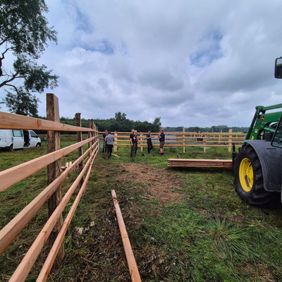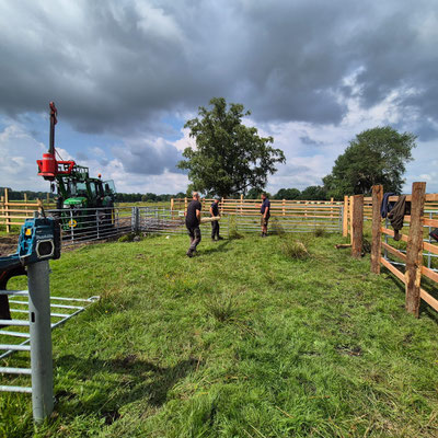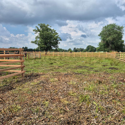 Im Juli 2025 konnten wir den Bau unseres neuen Viehfangs auf der Hauptweide abschließen – ein wichtiges Projekt für die sichere und schonende Arbeit mit unseren Robustrindern.